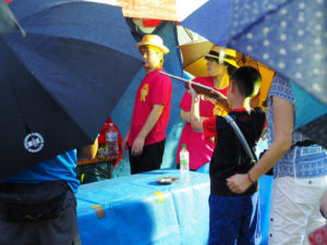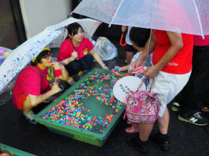 あいにくの雨でしたが、屋台にも人が集まり子どもたちの喜ぶ笑顔を見ることができました。